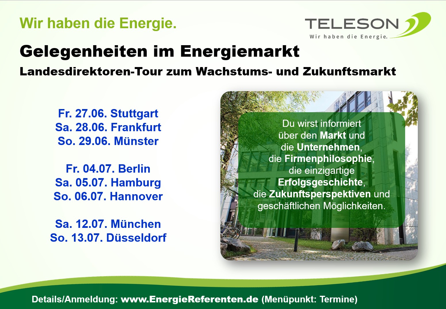 Bitte pünktlich und in geschäftsmäßiger Kleidung erscheinen!